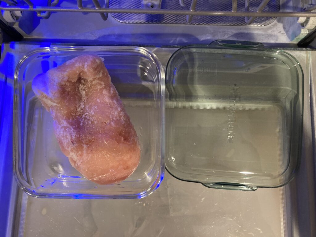 5、レンジから取り出し生焼けチェック(生焼け部が無いのを必ず確認)